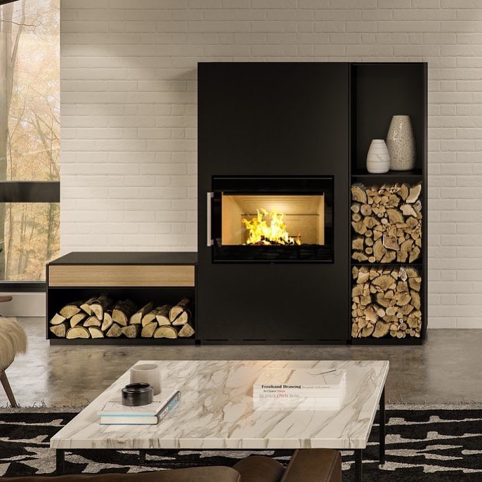 Das Design ist geradlinig und streng. Die schlanken Winkel spiegeln die Geschichte des dänischen Designs und der Liebe zum Detail wider. Die Funktionen sind unverwechselbar. In den Modulen können Sie Ihr Brennholz aufbewahren oder eine wohlverdiente Pause in der wohligen Atmosphäre einlegen. Mit einem stilvollen Kissen oben auf dem Seitenmodul lassen sich die Wärme und die knisternden Geräusche direkt aus nächster Nähe genießen.